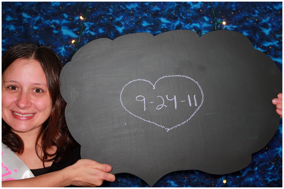 Finally, all we needed was a backdrop. I took the bride to the middle of HobbyLobby’s fabric section and made her pick one that she liked. Add a string of borrowed Christmas lights from a friend and we were ready to go: